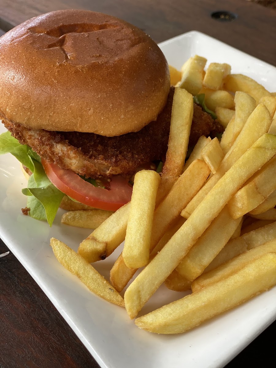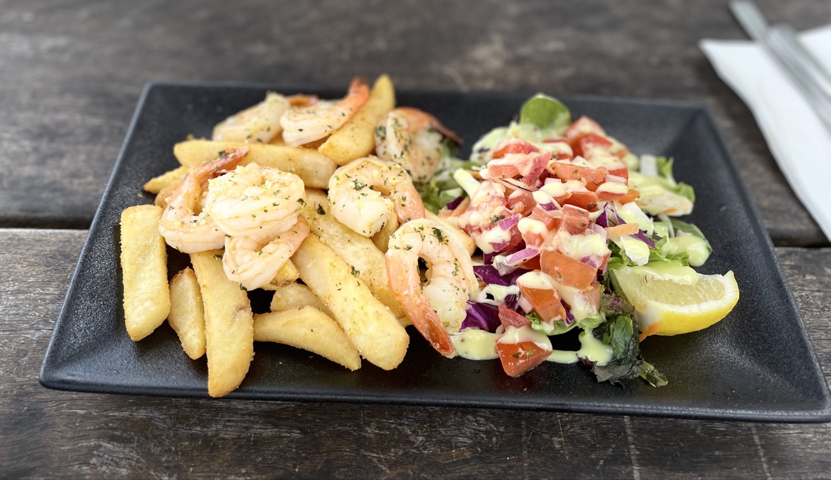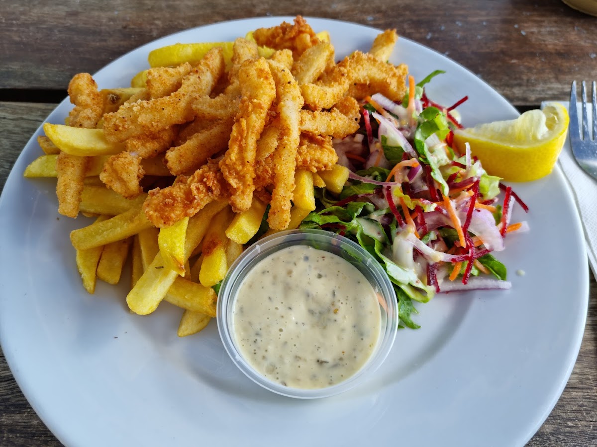 For lunch, the café offers a range of burgers, seafood dishes, wraps, and light meals. Fish and chips remain a popular choice, with flaky fish coated in crisp golden batter and served with hot chips and fresh salad. The flavours are straightforward and satisfying, allowing the quality of the ingredients to shine.